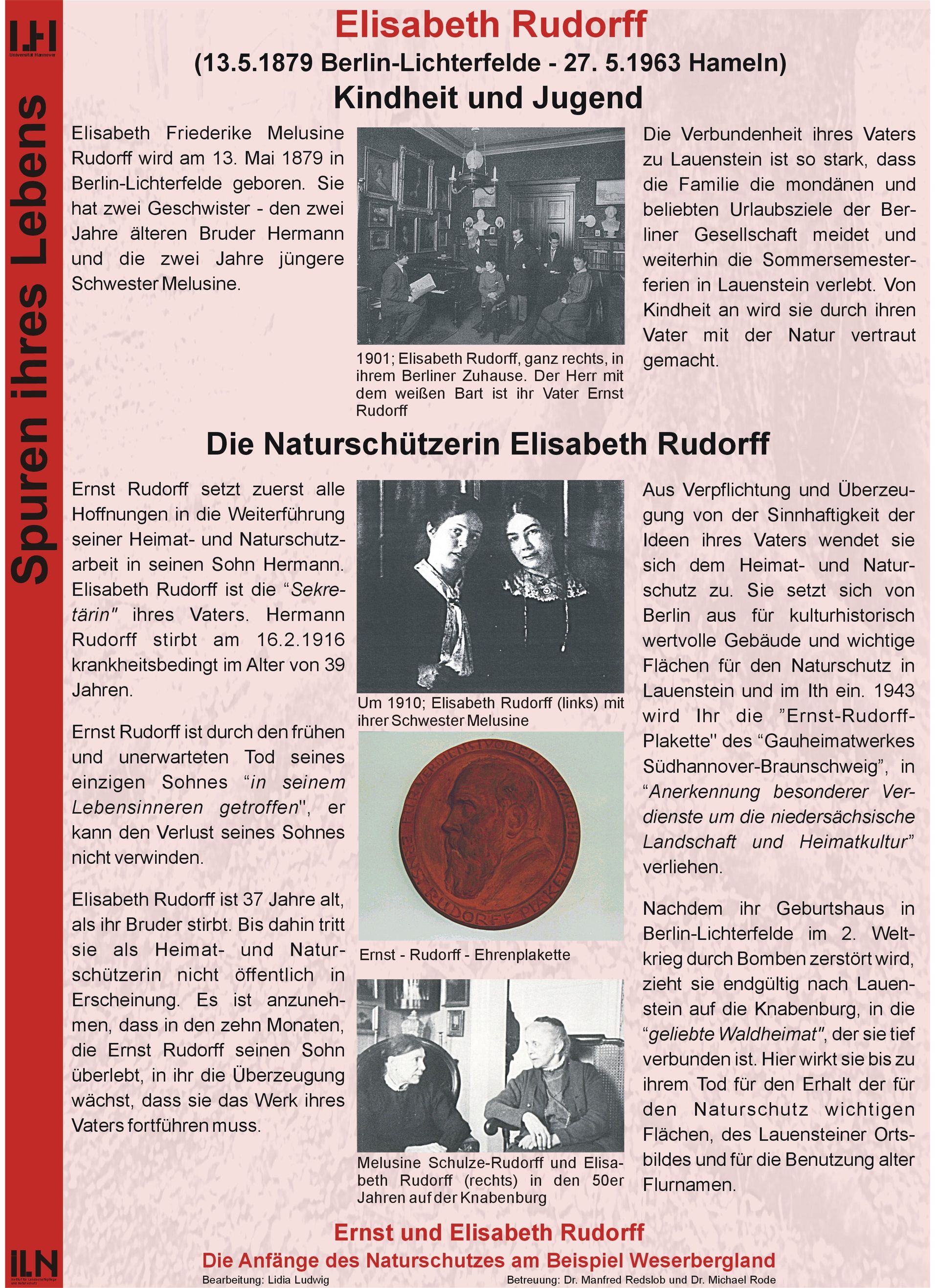 - Elisabeth Rudorff (1879 – 1963) – Wirken für den Ith im Leinebergland im Rahmen der 2. Arbeitstagung Frauen in der Geschichte der Gartenkultur